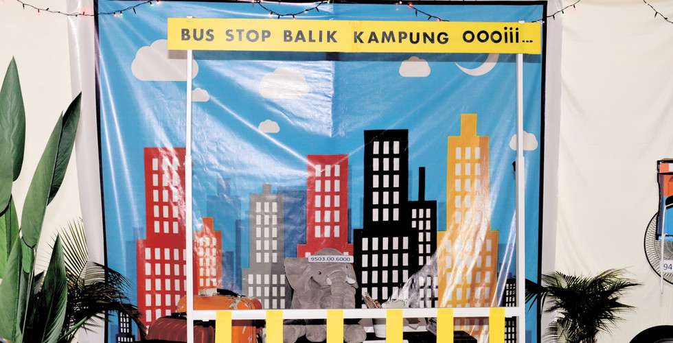 Bahagian dan gerai aku memilih konsep urban yang mewujudkan suasana bus stop di kota metropolitan. Konon-kononnya orang bandar yang nak pulang beraya di kampung gitu.....Boleh swipe gambar kiri kanan okay untuk lihat gambar-gambar yang lain. Penarik utama gerai kami dan orang berebut nak bergambar, korang boleh tengok sendiri, confirmlah motor vespa klasik tu. Maklumlah nak letak bas nanti, tak muatlah pulakan orang nak masuk bergambar ke gerai kami.heeeeeeeeeeee....